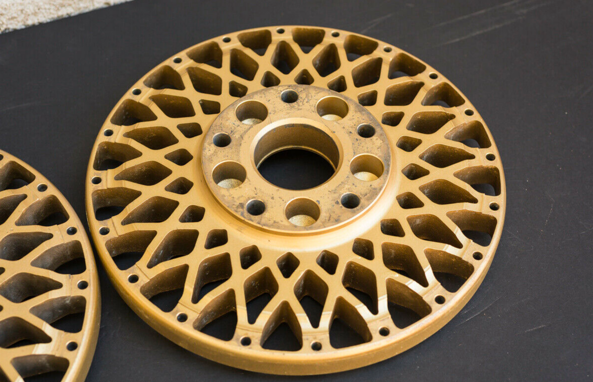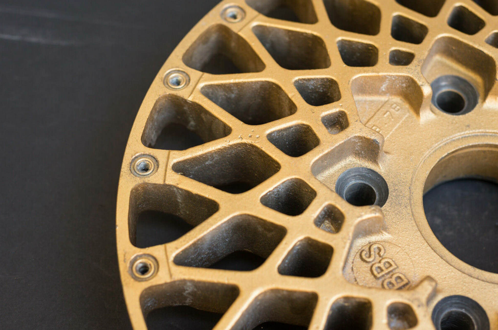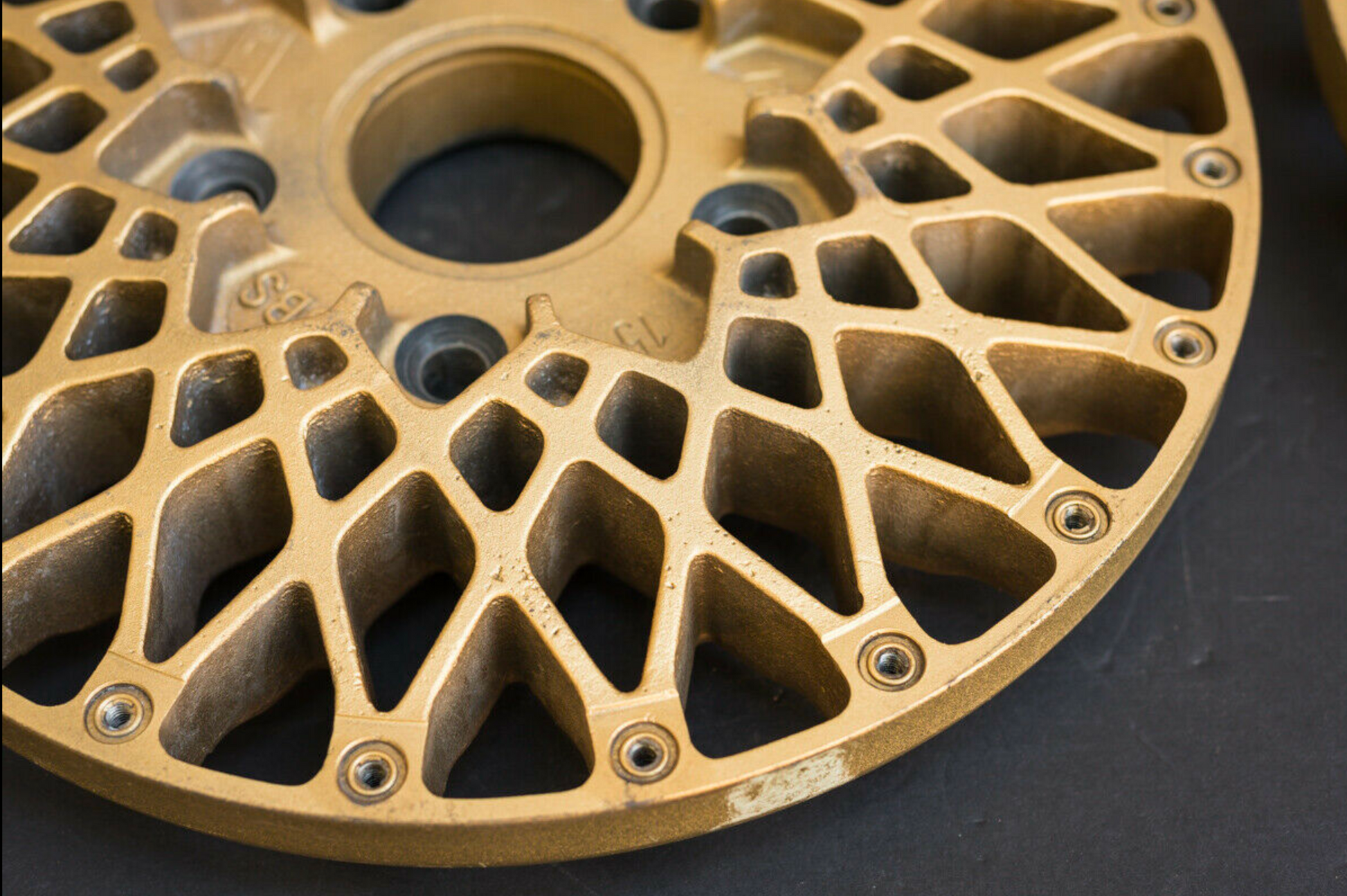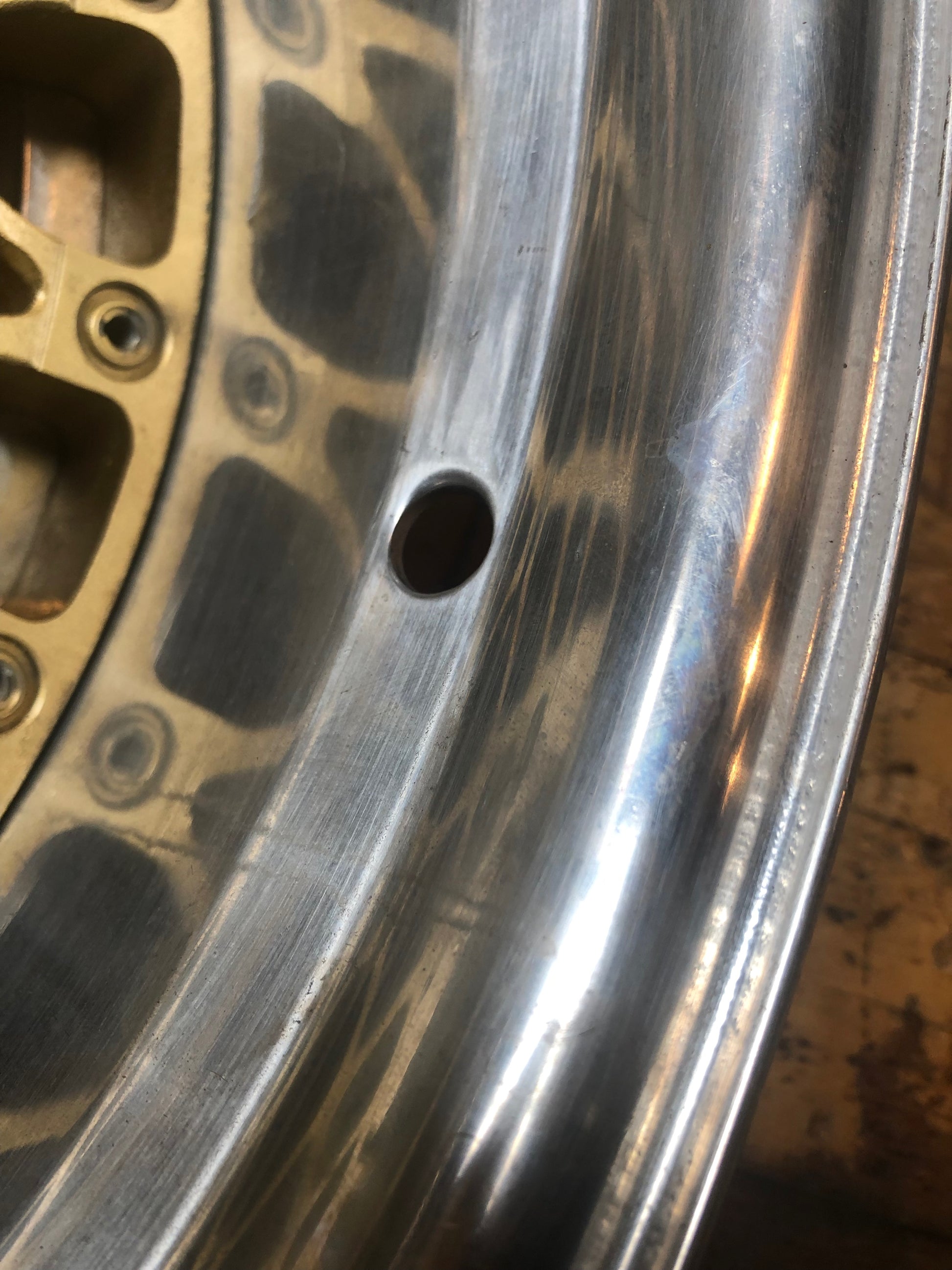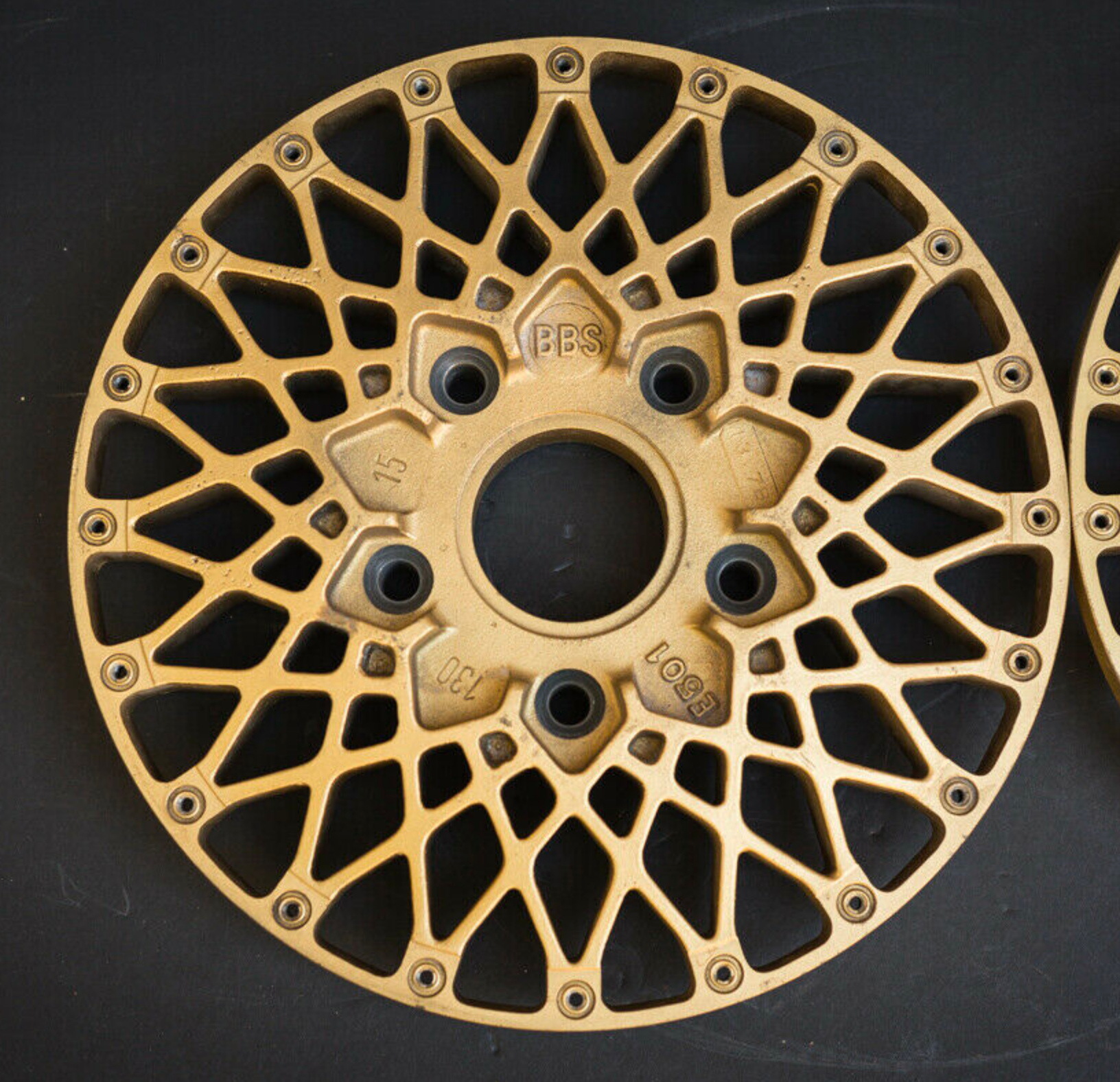 PAIR of BBS E50.1 Motorsports wheels. Porsche 5 x 130 bolt pattern, 15mm pads, both faces dated 1978. Magnesium centers in very good condition (although showing some pitting), aluminum lips and barrels that build into a 15x10" wheel. Missing hardware.