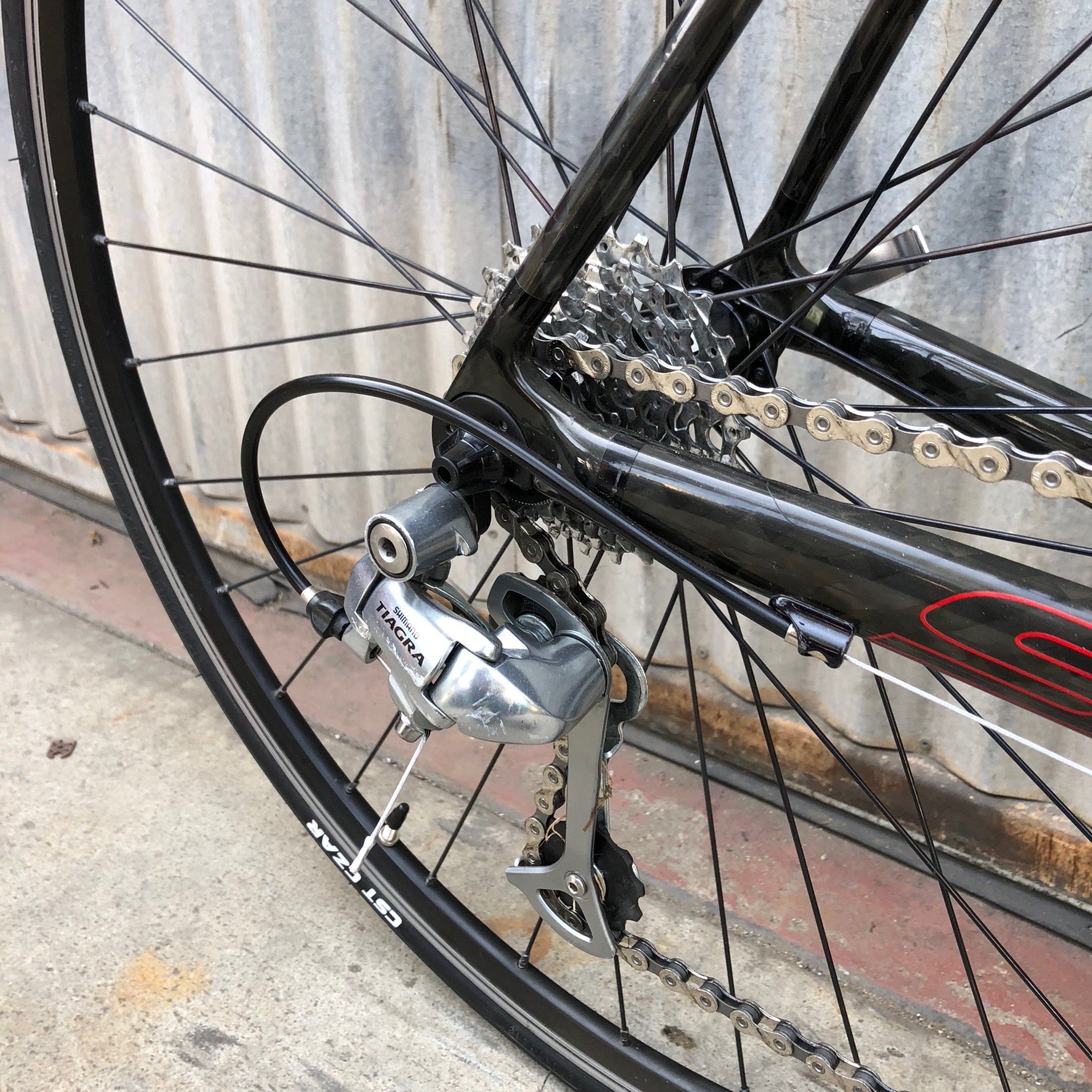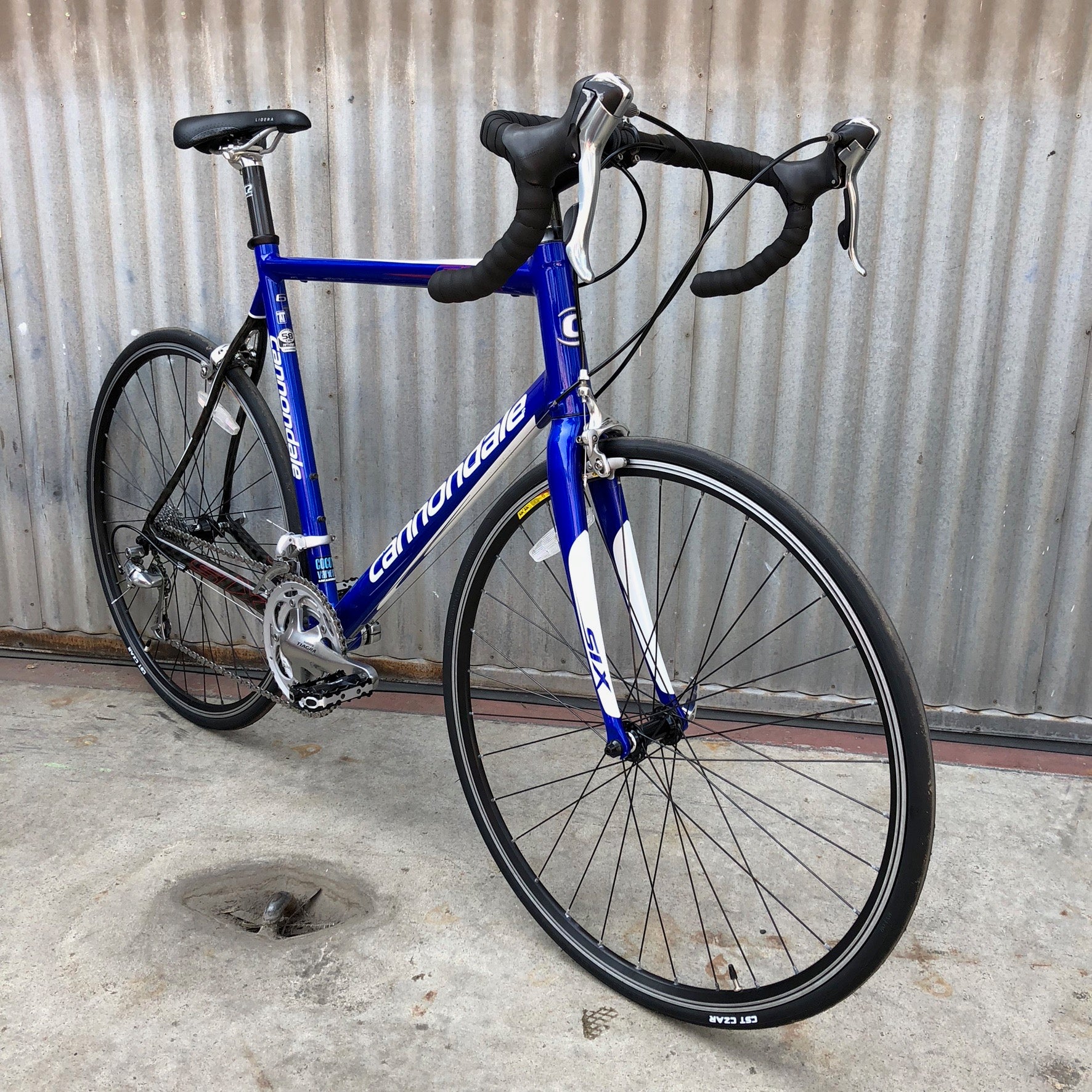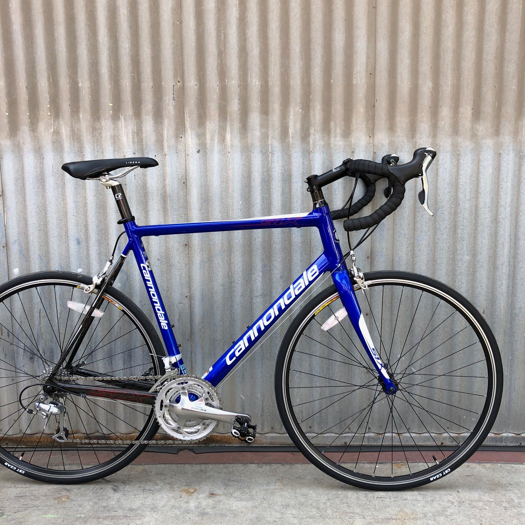 Cannondale Six with 3x9 Tiagra/Sora group. Pretty modern with carbon rear stays and carbon seat post. Really nice Ultegra brakes that must have been an upgrade. New tires, saddle, bar tape, chain, et al 58 CM Large $560 Great #firstseriousbike