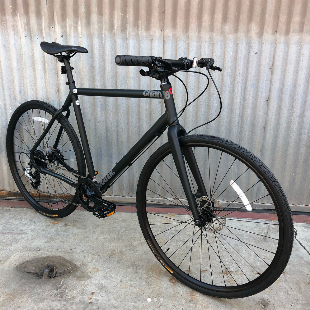 Charge Grater 4 in fantastic condition. Totally tuned and ready to go. 1x11 SRAM Rival, SRAM single speed crank with external bottom bracket. Really clean! Came with fenders originally (because UK.) $1200 new, Coco’s Crusader price $650 Size Large