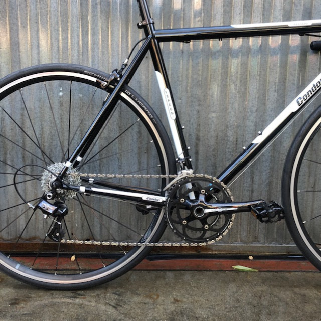 Top quality steel bicycle from Condor. Very well kept and attractive Condor Acciaio London road bike with Campaagnolo Veloce 10-speed group. New Schwalbe Lugano folding tires, new Campagnolo chain, full refresh and tune. 53 CM and rides a little bigger. New, this would be about $2800. Coco's price $1350.