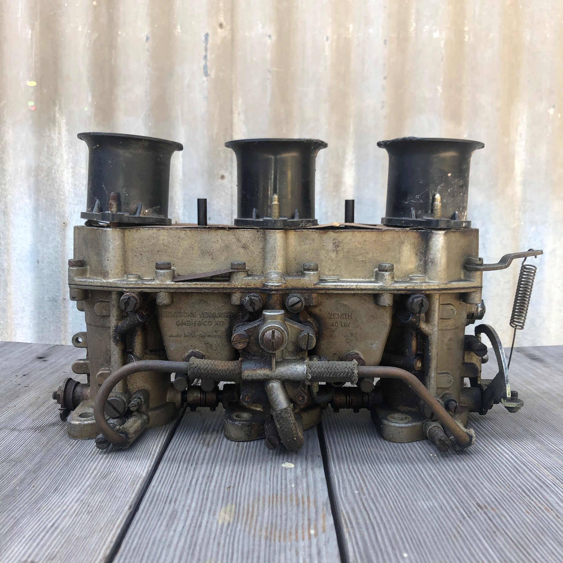 Zenith 40 TIN carburetor core for rebuild. The butterflies are in nice condition and have not worn grooves. The shafts are nice and tight. Don't see anything missing or broken, save the velocity stacks are a little melted.