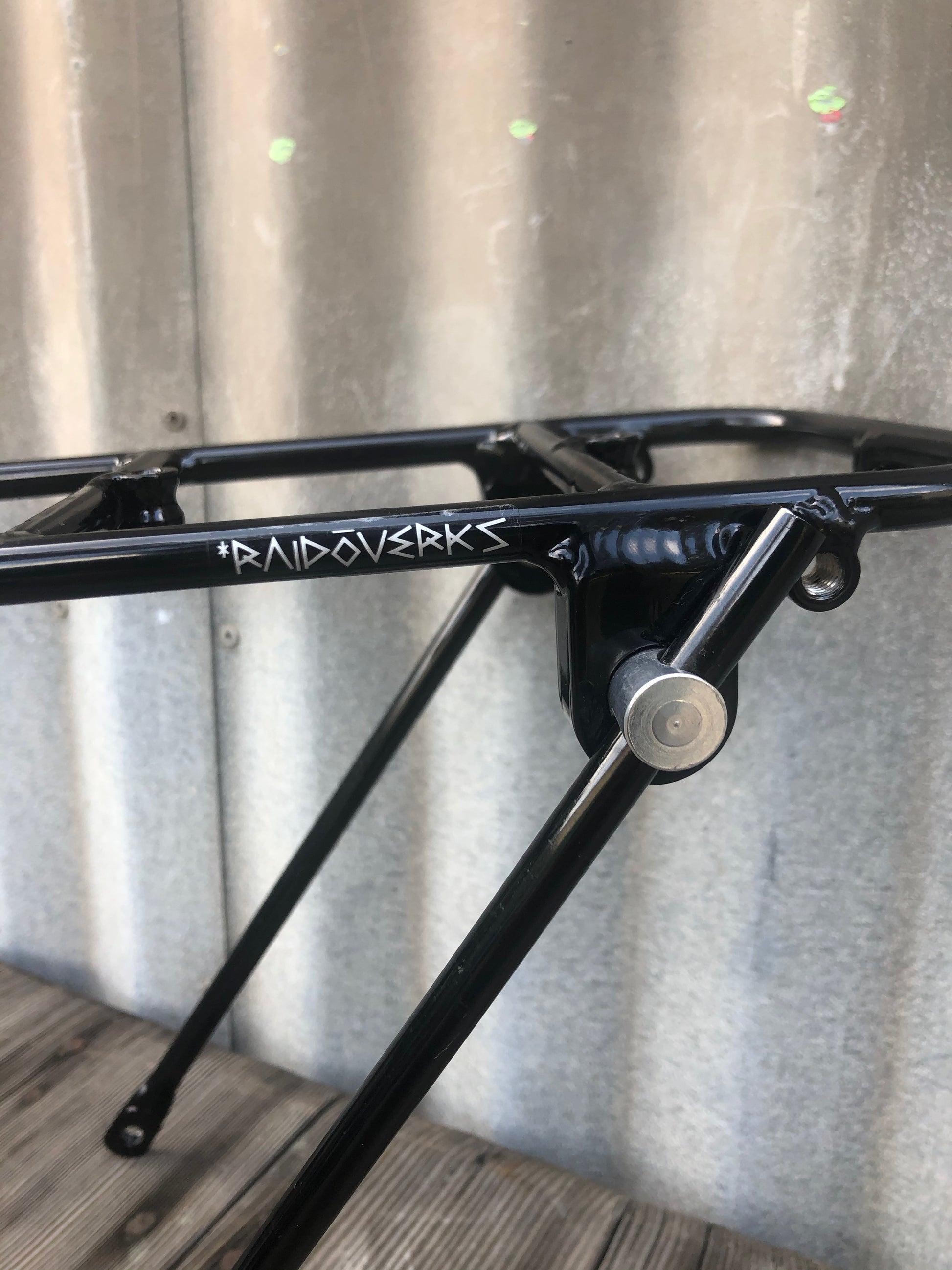 Rawland Rando front rack. Only has the one set of struts and heavy duty p-clamps.