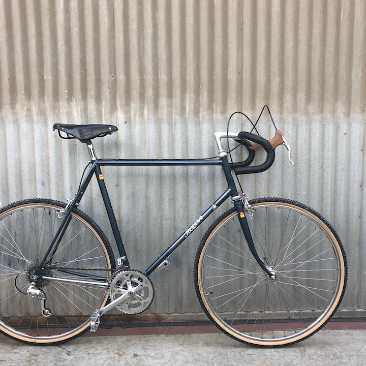 Specialized bicycles of this era are incredibly nice. Great bikes, sensible geometry, quality components, impeccable aesthetics. Suntour Superbe calipers, rear derailleur, shifters, levers with Cyclone front. Extreme range triple. Nitto/Specialized bars and stem. Stripped and rebuilt with new Jagwire, Cane Creek hoods, IRD gumwall 700x32 fully party knobbies. Brooks B17 and Deda leather look perf tape. $725 with Brooks, $600 with standard saddle. Unbelievable condition. Seat tube 60 CM; 58 CM top tube
