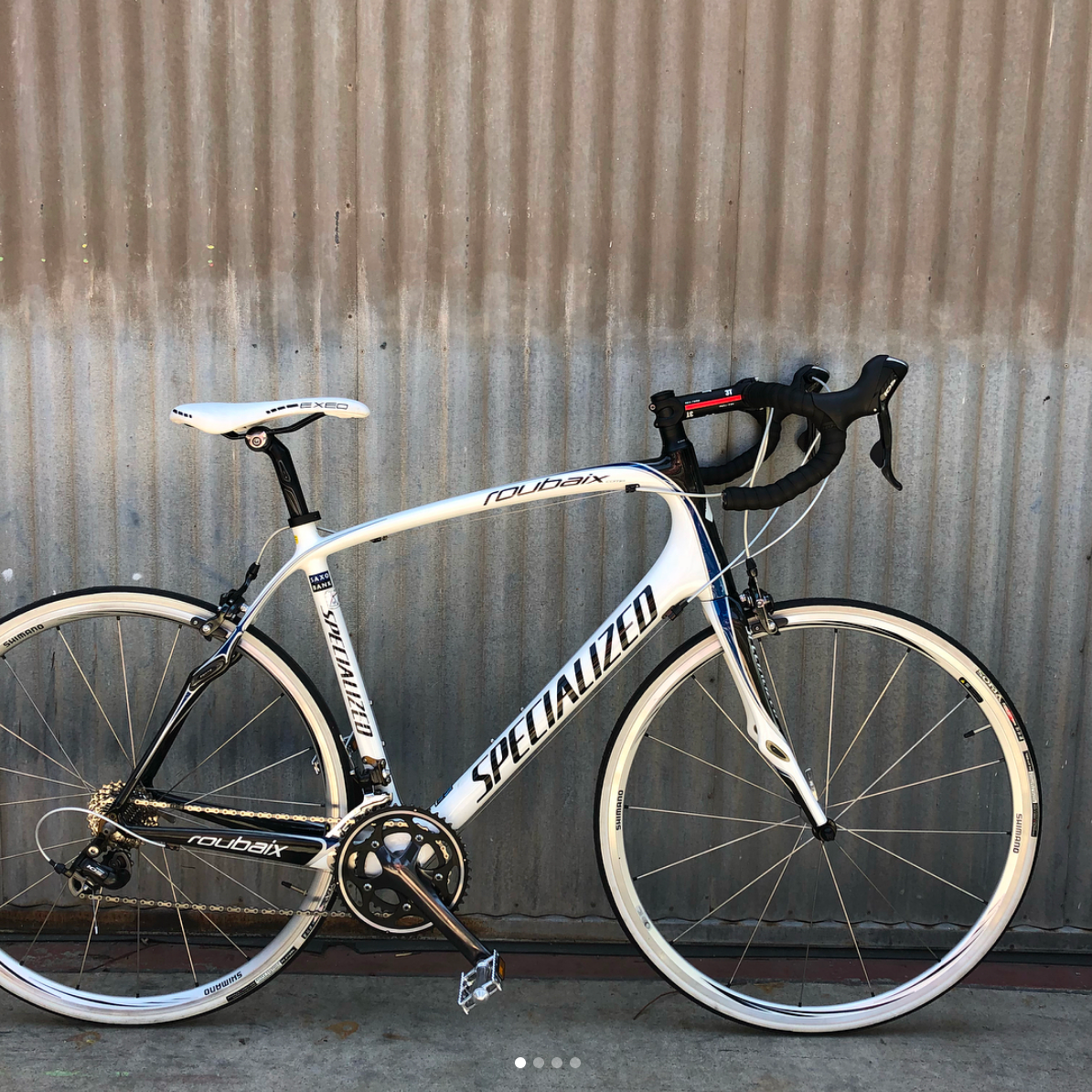Tired of getting hammered on your race bike? Maybe you need an extremely clean full carbon Saxo Bank branded Specialized Roubaix Comp. Shimano 105 including the crank and calipers. Hell of a thing for $895