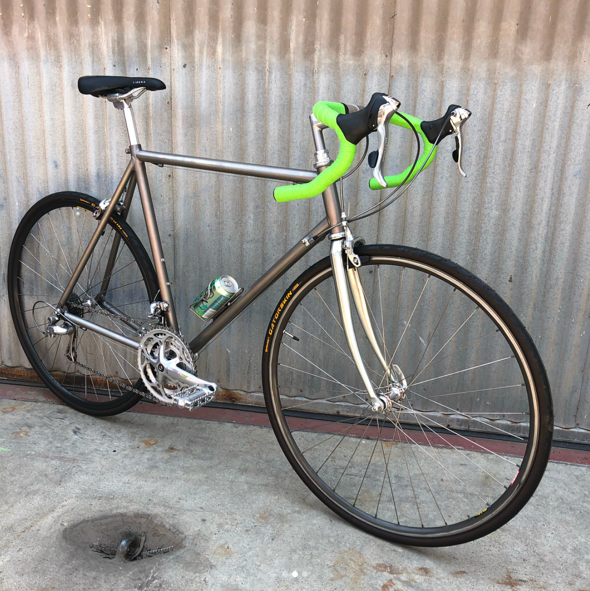 Unknown maker titanium frame with aluminum fork. Near new Gatorskins, new Fizik tape, full recable, new Jagwire pads and housing, new KMC chain. 105/Ultegra mix including Ultegra calipers. Dura-Ace hubs with Matrix rims. 56 CM ST 57 CM TT $650 such a deal!
