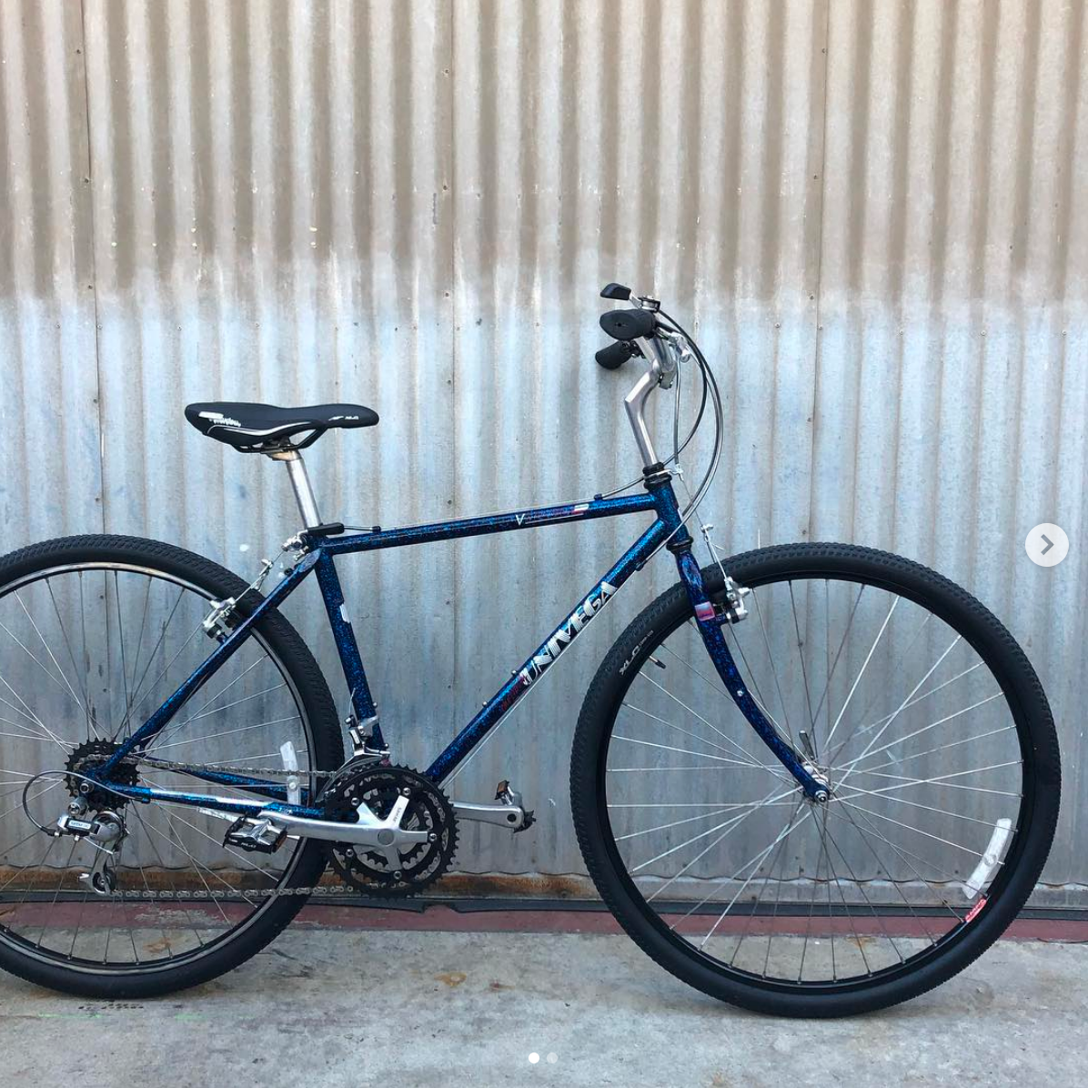 Cool city bike with a little wider 700c tire and knobbies to deal with rough streets and gravel roads.