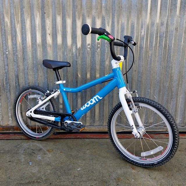 Very high quality, very light weight woom 3's fit riders aged 4-6 years old. These are the least intimidating bikes, as they are light and have a low standover.