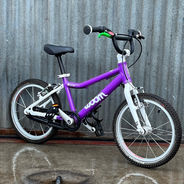 Immaculately kept, low use woom 3 with 16" wheels is best suited for those ages 4-6 in the height range of 41"-47". Extremely light. Absolutely best way to learn to ride.